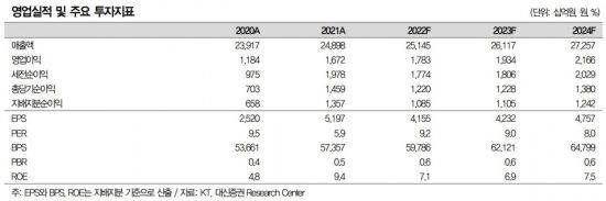 KT의 올해 2분기 연결기준 매출액은 전년 동기 대비 5% 증가한 6조3000억원, 영업이익은 4% 감소한 4600억원을 기록했다. 임직원 주식 보상 관련 일회성 인건비를 제외한다면 영업이익은 전년 동기 대비 5.1% 증가한 5000억원에 달한다는 게 대신증권의 분석이다. KT는 임직원을 대상으로 우리사주 취득을 지원하고 있는데, 취득 임직원에게 KT가 15%를 무상으로 추가 지급하고 있다.