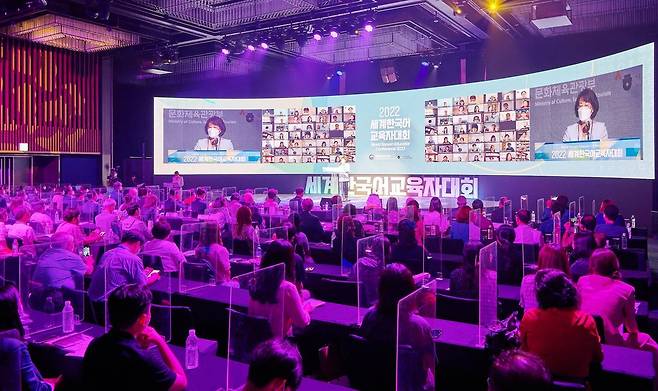 (서울=연합뉴스) 이해영 세종학당재단 이사장이 지난 9일 서울 서초구 JW메리어트호텔서울에서 열린 '2022 세계한국어교육자대회' 개막식에서 개회사 하고 있다. 2022.8.11 [세종학당재단 제공. 재판매 및 DB 금지]