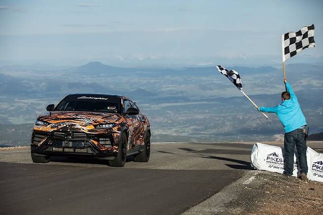 람보르기니가 100회 파이크스 피크 인터내셔널 힐 클라임에서 공개가 임박한 신형 우루스가 양산 SUV 부문 신기록을 달성했다고 11일 밝혔다.