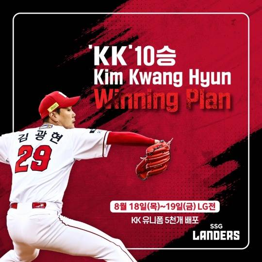 한편, SSG와 김광현 선수는 후반기에도 김광현 선수의 승리에 맞추어 새로운 팬 서비스를 제공하는 ‘KK 위닝플랜’ 이벤트를 지속적으로 추진할 계획이다.