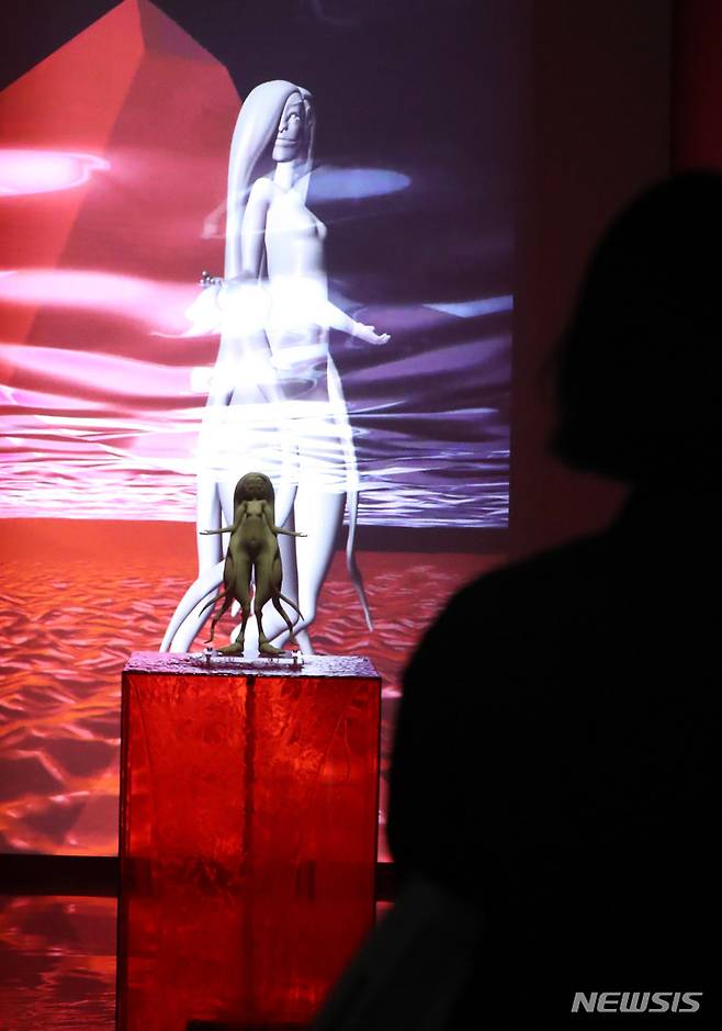 [서울=뉴시스] 추상철 기자 = 2022 아르코미술관 융복합 예술 페스티벌 '땅속 그물 이야기' 전시회 기자간담회가 열린 11일 오전 서울 종로구 아르코미술관에서 3D프린팅을 통한 조각작품이 전시돼 있다. 2022.08.11. scchoo@newsis.com