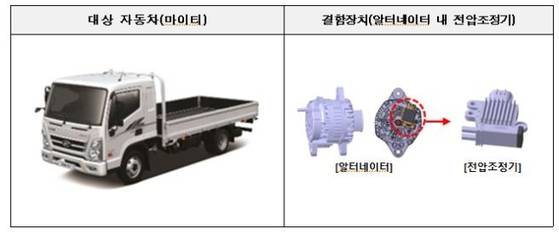 해당 모델들은 ‘얼터네이터’(발전기) 내 전압조정기 제조 불량에 의한 내부 단락으로 전기가 생성되지 않아 계기반 등 전기장치가 작동되지 않고 주행 중 시동이 꺼질 가능성이 확인됐다.