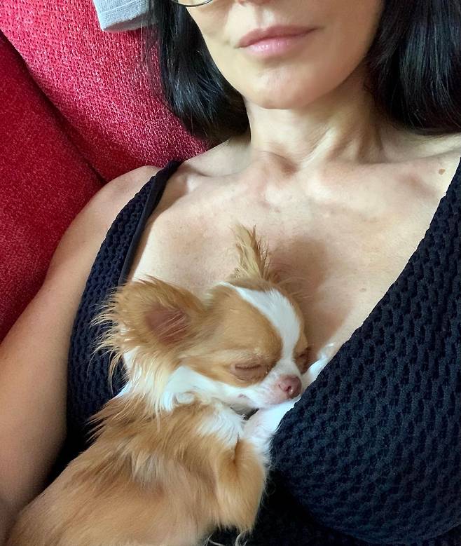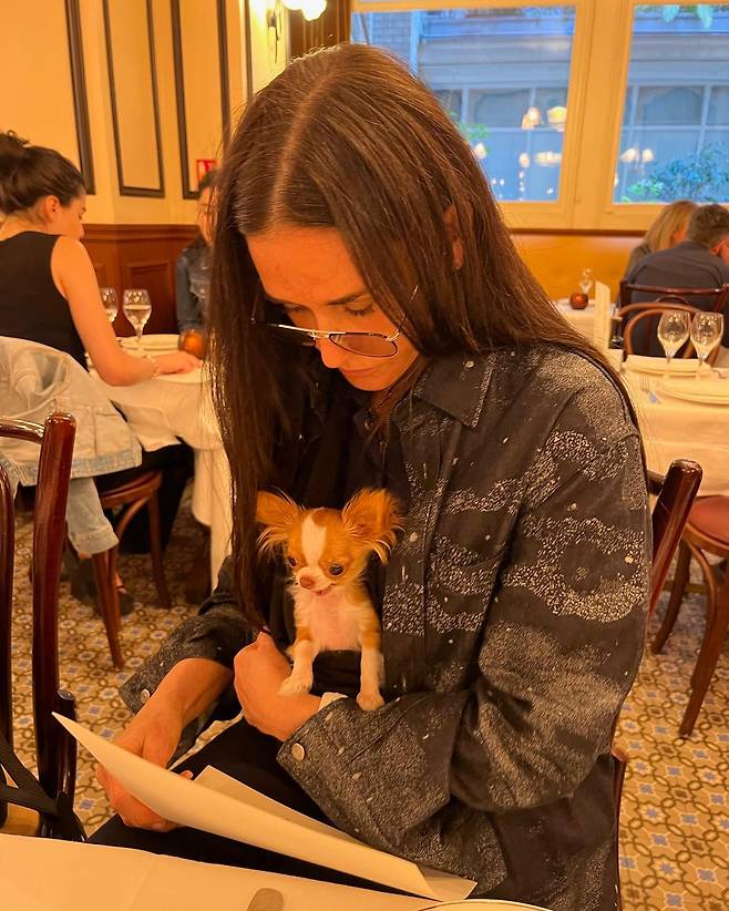 공개된 사진에는 데미 무어의 가슴에 몸을 파묻고 잠을 자는 그의 반려견 필라프의 모습이 담겼다. 지난주에도 필라프를 품에 안고서 저녁 식사를 즐기러 식당을 찾은 모습을 공개하며 눈길을 끌기도 했다.
