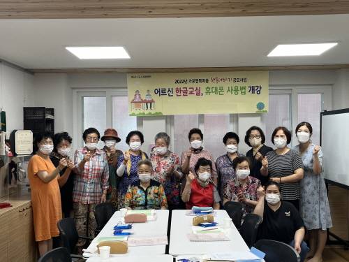 사상구 삼락동 가포행복마을(위원장 문복희)은 2022년 행복마을 행복더하기사업(주민공모사업)의 일환으로 지난 10일 '어르신 한글교실&휴대폰 활용 교실'을 개강했다.