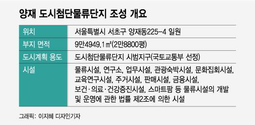하림그룹이 서울 서초구 양재동 옛 화물터미널 부지에 추진하고 있는 양재도시첨단물류단지 조성사업이 6년여만에 첫 걸음을 뗐다.