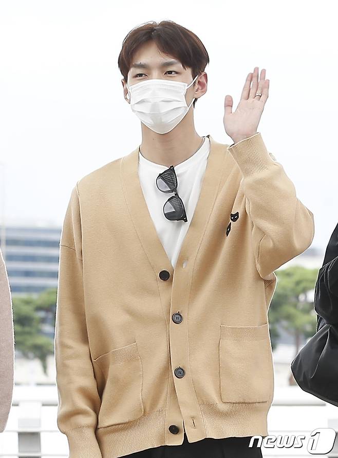 (인천공항=뉴스1) 권현진 기자 = SF9 주호가 콘서트 참석차 11일 오후 인천국제공항을 통해 호주 시드니로 출국하기 전 팬과 취재진을 향해 손을 흔들고 있다. 2022.8.11/뉴스1
