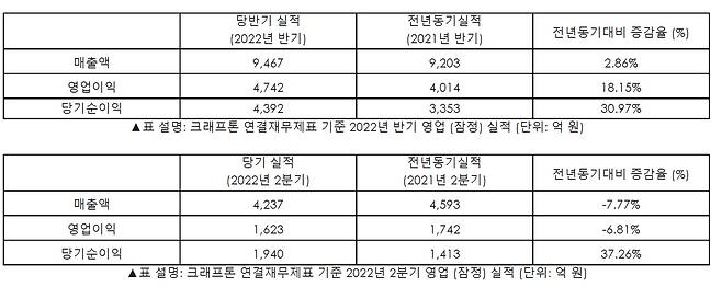 크래프톤이 2022년 2분기 실적을 발표했다.