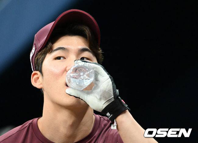 경기에 앞서 키움 김혜성이 훈련을 마치고 물을 마시고 있다. 2022.08.11 /jpnews@osen.co.kr
