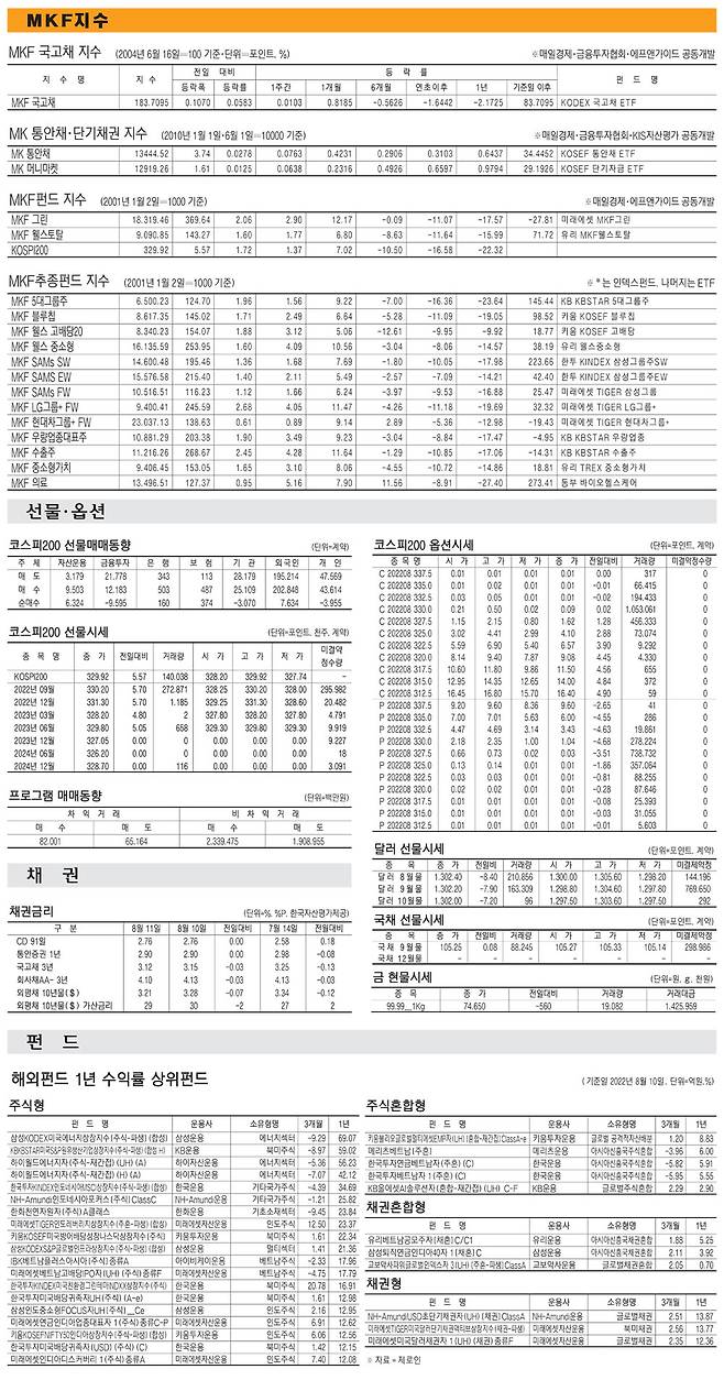 [표] 주요 증시 지표 (8월 11일)