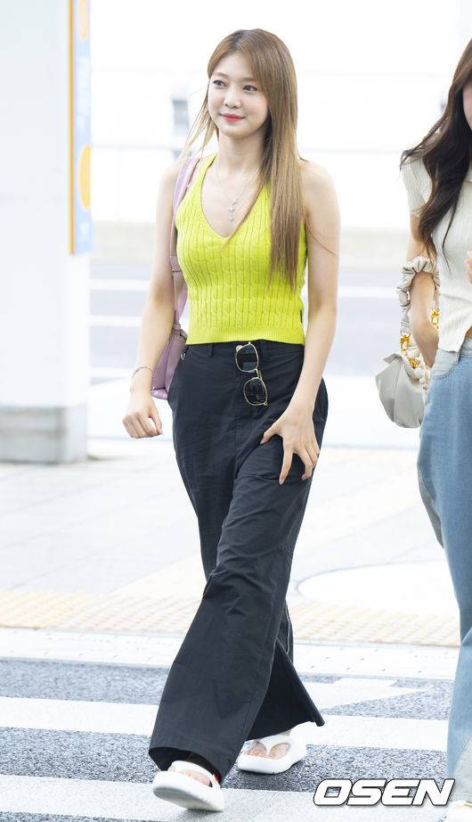 에버글로우 온다가 출국장으로 이동하고 있다. 2022.08.11 /ksl0919@osen.co.kr