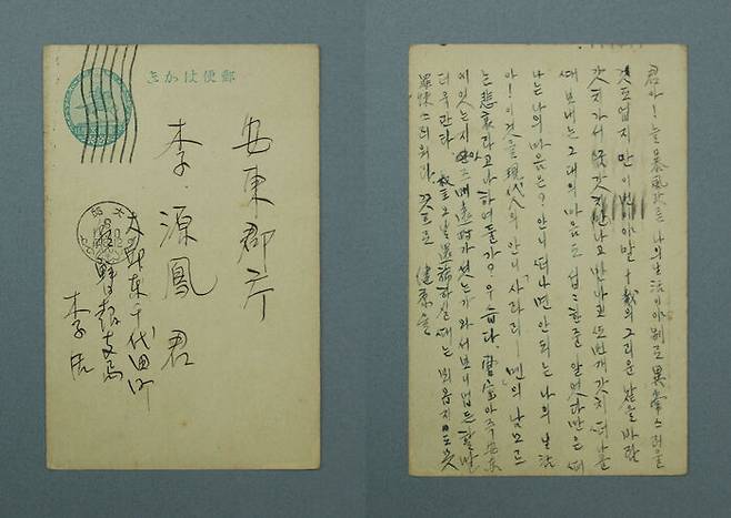 이육사가 1931년 11월 친족 이원봉에게 보낸 엽서에는 그를 그리워하는 애틋한 마음이, 1936년 7월 친구인 시인 신석초(본명 신응식)에 보낸 엽서에는 두 사람의 우정이 담겼습니다.