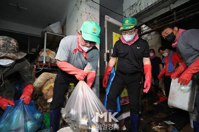 [포토] 수해 복구 봉사하는 국민의힘 지도부