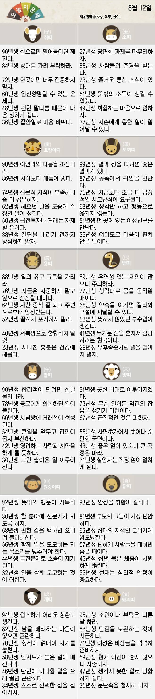 [재미로 보는 오늘의 운세] 8월 12일 (금요일)