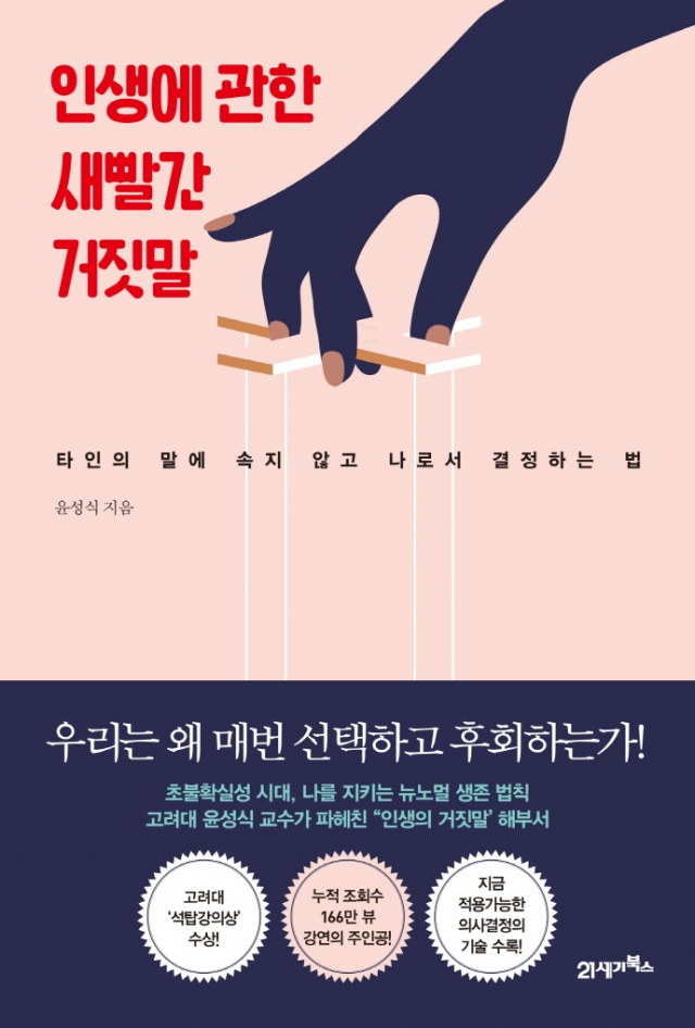 신간 ‘인생에 관한 새빨간 거짓말’의 저자 윤성식 교수는 이런 타인의 조언과 간섭이 나의 인생에는 하등 도움이 되지 않는다고 일갈한다. 저자는 “아름답고 거룩한 말로 내게 조언하는 사람은 나에게 조언한 뒤에 금방 나를 잊어버리고 자기 일을 한다”며 “그가 나에게 조언한 뒤 나를 5분이나 생각해줄까?”라고 묻는다.