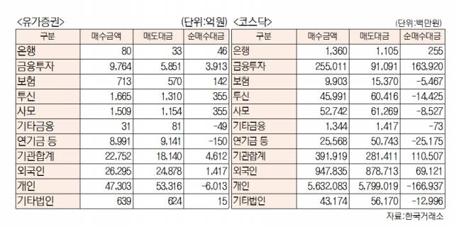 - [표]주간 코스피·코스닥 투자주체별 매매동향(8월 1일~5일)