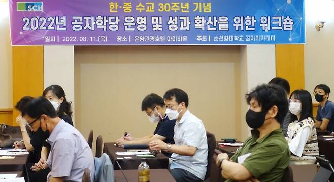 순천향대학교 공자아카데미가 11일 아산시 온양관광호텔에서 한·중 수교 30주년을 기념해 '2022년 공자아카데미 부설 공자학당 운영 성과 확산 워크숍'을 진행했다.