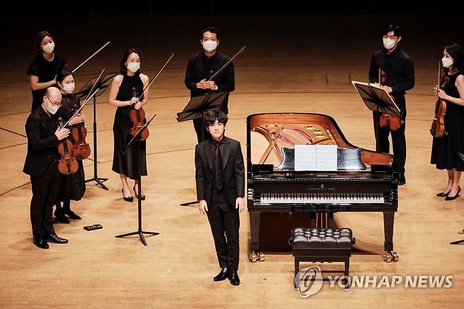 (서울=연합뉴스) 피아니스트 임윤찬이 지난 10일 서울 롯데콘서트홀에서 열린 '바흐 플러스' 공연에서 연주를 마치고 관객들에게 인사하고 있다. 2022.8.11 [목프로덕션 제공. 재판매 및 DB 금지]
