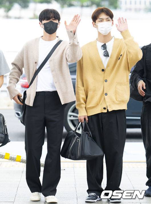 SF9 재윤, 주호가 취재진을 향해 포즈를 취하고 있다. 2022.08.11 /ksl0919@osen.co.kr
