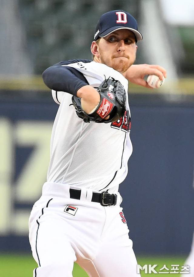 두산 선발투수 브랜든이 역투하고 있다.