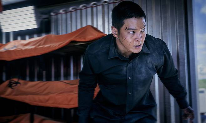 지난 9일 화상으로 만난 정 감독 설명처럼 남·북한은 물론 미 중앙정보국(CIA)까지 얽히고설킨 스토리는 ‘카터’의 다양한 액션을 위한 장치다. 목욕탕에서 팬티 차림에 낫 한 자루 들고 100여명을 상대하는 카터의 액션은 오토바이·자동차·헬기·기차·스카이다이빙으로 스케일을 넓힌다. 20분간 원 테이크로 촬영된 장면도 있다. 카터는 쉴 틈 없이 뛰고, 오토바이를 몰며 낯선 목소리로 내려지는 지시를 하나씩 수행한다. 정 감독은 “원 테이크로 촬영하다 보니 배우들도 힘들지만 카메라 호흡을 맞춰야 하는 부분 때문에 스태프도 힘들었다”며 “위험 수위가 차원이 다른 장면도 있는데 이번 영화 촬영 동안 정말 작은 찰과상 정도의 부상만 있었다. 그래서 이렇게 위험한 액션 영화 촬영을 무사히 끝낸 것만으로도 감사드린다”고 말했다.