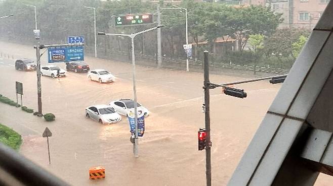 수도권을 중심으로 중부 지방에 많은 비를 뿌렸던 비구름이 지금은 남쪽으로 많이 내려갔습니다. 그럼 얼마나 비가 많이 오고 있는지 몇 군데 현장 CCTV 화면 보면서 먼저 말씀을 드리겠습니다.
