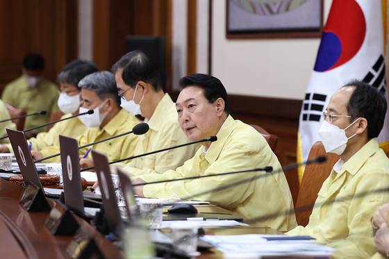 President Yoon Suk-yeol presides over a Cabinet meeting at the Government Complex Seoul, Tuesday. [PRESIDENTIAL OFFICE]