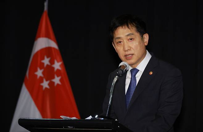 김주현 금융위원회 위원장은 11일 오후 서울 용산 그랜드 하얏트 호텔에서 개최된 '57번째 싱가포르 국경절 행사'에 주빈(Guest of Honor)으로 참석해 축사를 했다.