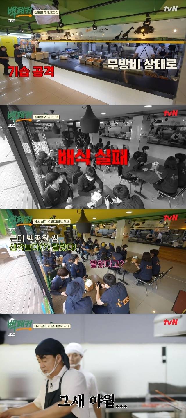 시간 내 배식을 실패하면서 백종원이 그새 야윈 비주얼을 자랑했다.