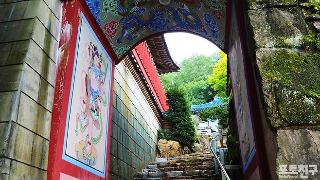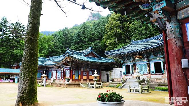 절 입구 석문에 우암 송시열이 친필로 쓴 음각이 남아있습니다.