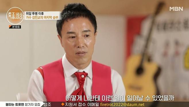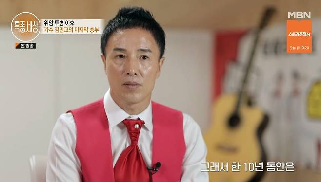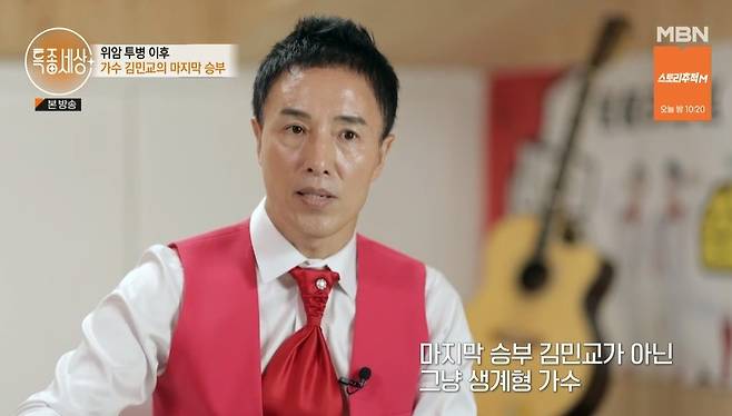 강변가요제 금상 출신의 김민교는 1990년대 ‘마지막 승부’를 히트시키며 전성기를 구가했으나 그의 인생은 순탄치 않았다.