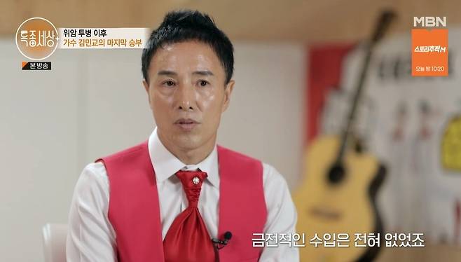 김민교는 "내가 '마지막 승부'로 연희동 건물을 샀다는 얘기가 있었다. 사긴 샀다. 내가 산 게 아니라 사무실에서. 내게 오는 금전적인 수입은 전혀 없었다"면서 "한 10년을 '마지막 승부' 김민교가 아닌 생계형 가수 김민교로 살았다. 먹고 살기 힘들어서 방송은 안 하고 계속 공연만 했다"며 과거의 생활고를 고백했다.