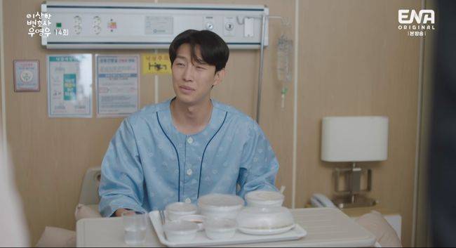 위암 3기 진단을 받은 정명석은 한바다 직원들을 향해 “서울에서 수술 예약하고 내려온거다. 알아서 잘하고 있으니까 걱정하지 마라”라고 말했다. 우영우는 휴대폰을 보며 생존률이 30~40%라고 말하기도.