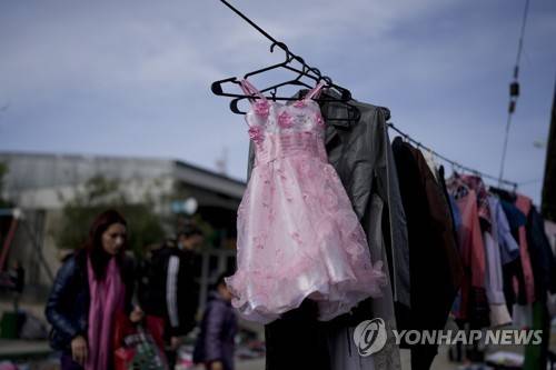 Secondhand garments are displayed on a makeshift clothesline at a market where people can buy or barter goods, on the outskirts of Buenos Aires, Argentina, Wednesday, Aug. 10, 2022. Argentina has one of the world’s highest inflation rates, currently running at more than 60% annually, according to the National Institute of Statistics and Census of Argentina (INDEC). (AP Photo/Natacha Pisarenko)