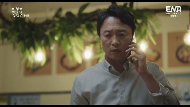 이날 법정에서 쓰러진 정명석(강기영 분)의 병명이 밝혀졌다. 위암 3기 였던 것. "황지사 사건까지만 하고 수술하겠다"는 그를 위해 우영우는 "지금 아니면 다시는 행복국수 먹지 못할지도 모른다"며 한바다즈와 행복국수 사장님 찾기에 나섰다. 이리저리 탐문한 결과 '행복국수'는 엄마랑 아들이랑 오래 해오던 곳으로 주민들에게도 맛을 인정받았다. 그러나 후발주자 '행운국수'의 방송, 인플루언서, 셀럽 등을 활용한 공격적 마케팅에 밀려 결국 문을 받게 됐다고.