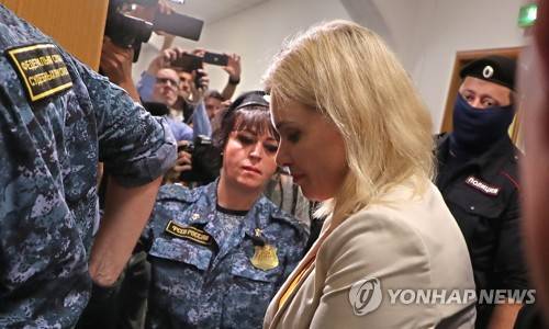 epa10115601 Former Russian state Channel One TV journalist Marina Ovsyannikova is escorted to attend a hearing at the Basmanny district court in Moscow, Russia, 11 August 2022. Ovsyannikova was arrested on 10 August 2022. She is charged with public spreading of deliberately false information about the use of the Russian Armed Forces. Her lawyer wrote on social media that the reason of the criminal case launching was a picket staged by Ovsyannikova on 15 July on Sofiyskaya embankment in Moscow. Former Russian state Channel One TV channel journalist Marina Ovsyannikova pulled international attention after on-air protest 14 March 2022 against the 'special military operation' declared by Russian president, when she had entered Ostankino on-air TV studio with a poster reading 'No War. Stop the war. Don't believe the propaganda. You are being lied to here'. EPA/MAXIM SHIPENKOV