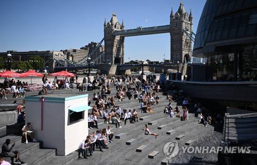 epa10115690 People enjoy the warm weather outside City Hall in London, Britain, 11 August 2022. Britain is likely to suffer drought conditions until October as the dry weather continues. The UK Met Office has announced an amber weather alert for extreme heat. Meanwhile Thames Water which operates London's water supply has announced a hosepipe ban in order to save water. EPA/ANDY RAIN