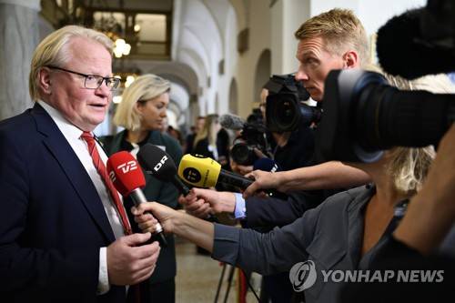 epa10115709 Sweden's Defence Minister Peter Hultqvist speaks to journalist on his arrival to the international donation conference #CopenhagenUkraine at Christiansborg in Copenhagen, Denmark, 11 August 2022. The defense ministers from Denmark, Britain and Ukraine are hosting the international donation conference. The event, with the participation of 26 countries, aims at reinforcing the long-term support to Ukraine with discussions on how to strengthen financing, weapon production, training and demining. EPA/Philip Davali DENMARK OUT