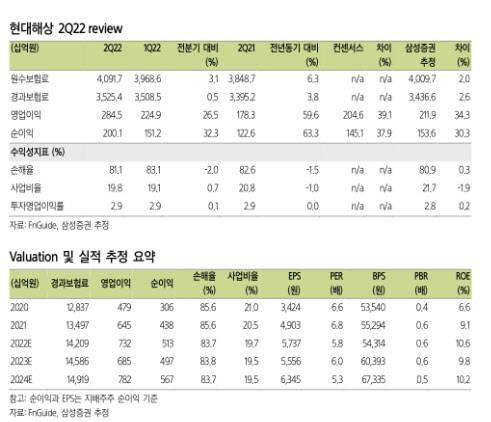 현대해상, 2Q 호실적에 위험손해율 개선 반갑다-삼성