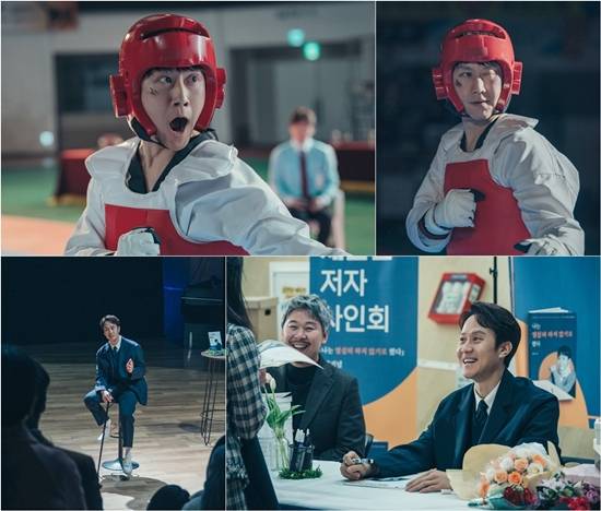 그런가 하면 이어진 스틸에는 멘탈코치로 거듭난 제갈길의 현재 모습이 담겨있어 관심을 높인다. 신작 출간을 기념해 강단 위에 앉아 강연을 펼치고 사인회를 진행하며 독자들과 마주하고 있는 가운데, 그의 한쪽 손에 쥐어진 지팡이와 함께 똘끼는 온데간데없는 부드러운 미소가 시선을 떼지 못하게 한다.