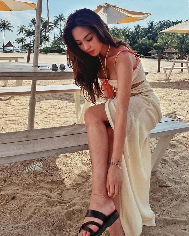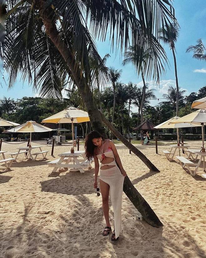 비키니를 가릴 듯 말 듯? 착-붙! 몸매라인이 강조되는 휴가철 드레스를 입은 김희정. 복부가 대놓고 노출되는 원형 컷 아웃 디테일로 여름 휴가룩을 선보였다.