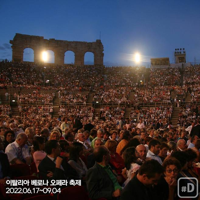 이탈리아 북부 작은 도시이자 로미오와 줄리엣의 낭만적인 무대인 베로나에선 매년 6~9월에 오페라 축제가 열립니다.