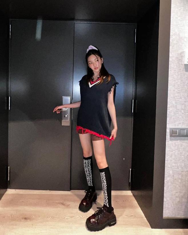 찐 젠지 걸그룹으로 인기를 끌고 있는 뉴진스의 혜인. 그녀의 뉴 애슬레저 룩은 어떨까. 스포티한 디자인의 하의실종 니트 베스트와 무릎까지 올라오는 니삭스, 워커 스니커즈를 매치해 유니크한 룩을 완성했다. 레터링이 하드하게 들어간 니삭스는 더욱 스포티하면서도 트렌디해 보인다는 점, 기억할 것!