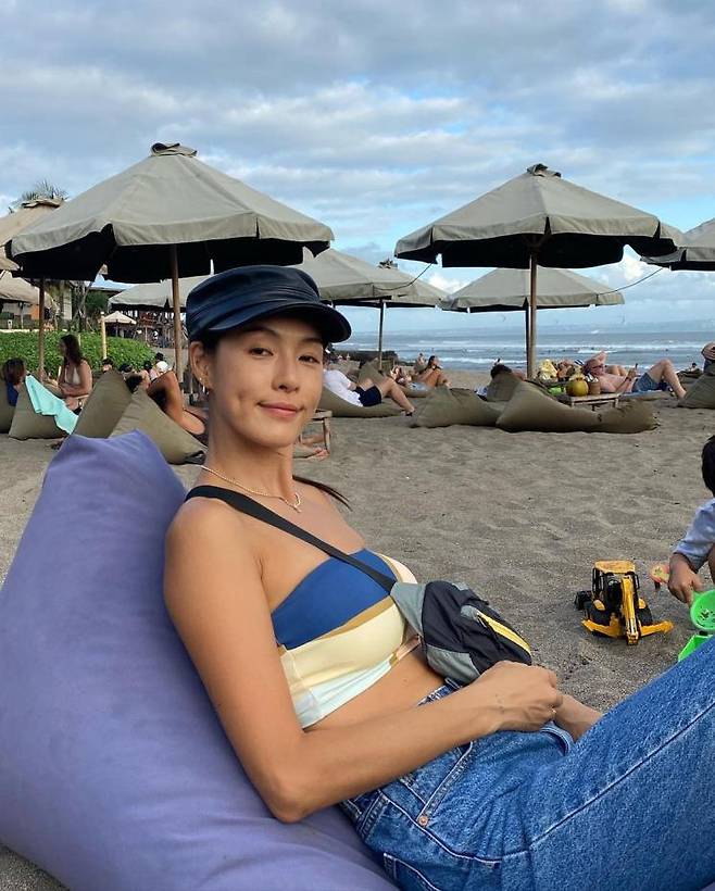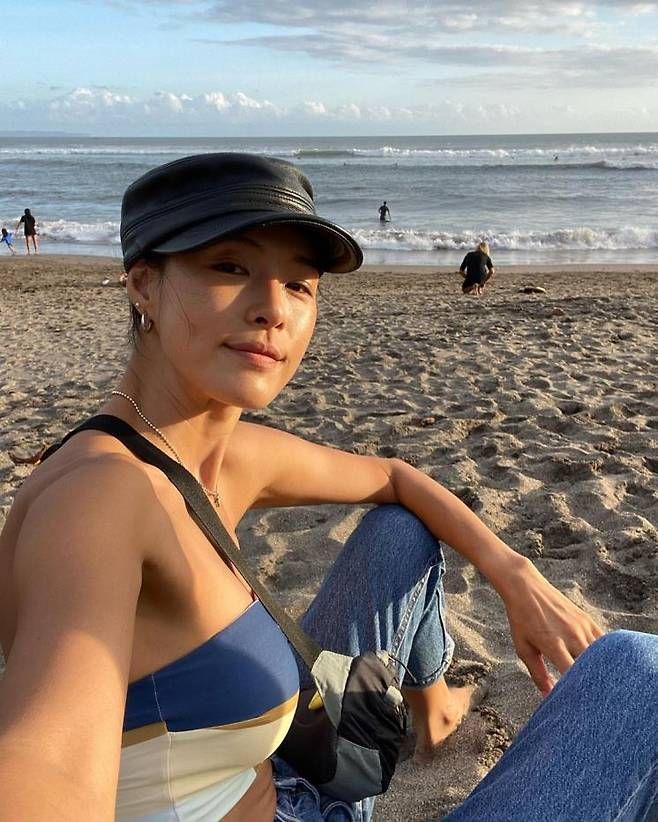 화장기 없이 수수한 비주얼을 그 누구보다 멋지게 소화하는 발리댁 가희는 브라 톱을 쿨하게 연출했다. 기하학 패턴이 돋보이는 튜브 톱과 데일리한 데님 팬츠를 선택한 것. 여기에 의외의 아이템으로 레더 마도로스 햇을 더해 매니쉬한 매력까지 뽐냈다.