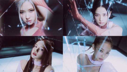 지수는 네크라인의 커다란 리본으로 우아한 분위기를 연출했고, 제니는 젬스톤을 활용한 아이 메이크업으로 색다른 매력을 예고했다. 로제는 오묘한 애쉬그레이톤 헤어를 양 갈래로 묶어 역동적인 섹시미를 자아냈으며, 붉은색 긴 생머리의 리사는 깊고 진한 눈빛으로 화면을 가득 채웠다.