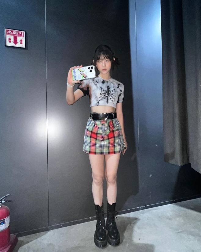 냐옹~한 마리의 고양이처럼 살짝 올라간 눈꼬리가 계속 생각나는 멤버. 크롭티, 체크 스커트, 통굽 부츠로 락시크st 패션 완성! 여기에 하트 벨트와 작은 진주 아이템을 더해 러블리한 무드도 놓치지 않았다.