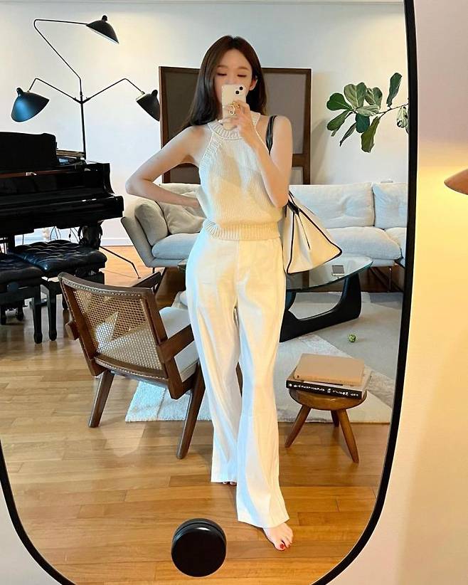 심플 이즈 더 베스트. 올 화이트 룩의 정석을 보여준 다비치 강민경! 니트 베스트에 슬랙스 조합을 화이트로 맞춰주어 시원하게 코디했다. 거기에 화이트 숄더백으로 갓벽한 화이트 룩 조합을 보여주는데. 올 여름 올 화이트 룩으로 다양한 무드를 연출해 보자!
