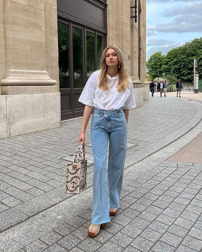 일상 생활에서부담없이 클로그 아이템을 소화하고 싶다면 인플루언서 레베카의 패션을 참고해보자. 여름 패션의 국룰, 화이트 티셔츠와 데님 팬츠 조합에 클로그를 신어 센스 있는 데일리 룩을 완성했다. 슈즈와 같은 톤의 캔버스 소재 토트백까지 더하니 여름 느낌 두 배!