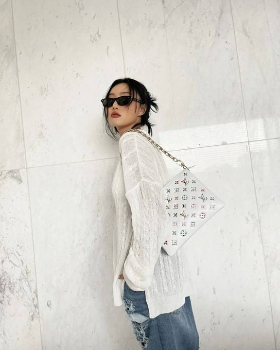 박시한 실루엣의 니트웨어와 디스트로이 진으로 편안한 데일리 룩을 연출한 화사. 그녀의 오라 때문일까? 어깨에 무심하게 걸친 체인 스트랩의 쿠상 백 마저 힙해보인다.