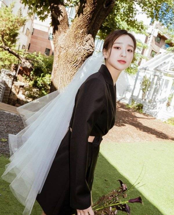 사진 속 손연재는 흰 면사포와 검은색 정장을 매치해 특별한 웨딩 화보를 완성했다.
