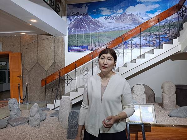 | ▲ 바얀 오르기 박물관장 '아즈맽' 여사가 고조선유적답사단 일행이 박물관을 방문해준 것에 대해 환영인사를 한 후 문화해설사로 하여금 박물관을 안내해주도록 했다. 바얀 오르기 박물관장은 몇년 전 여수미술관에서 바얀 오르기 지역 화가들이 그린 그림전시회를 열어 필자와 만난 인연이 있다. |